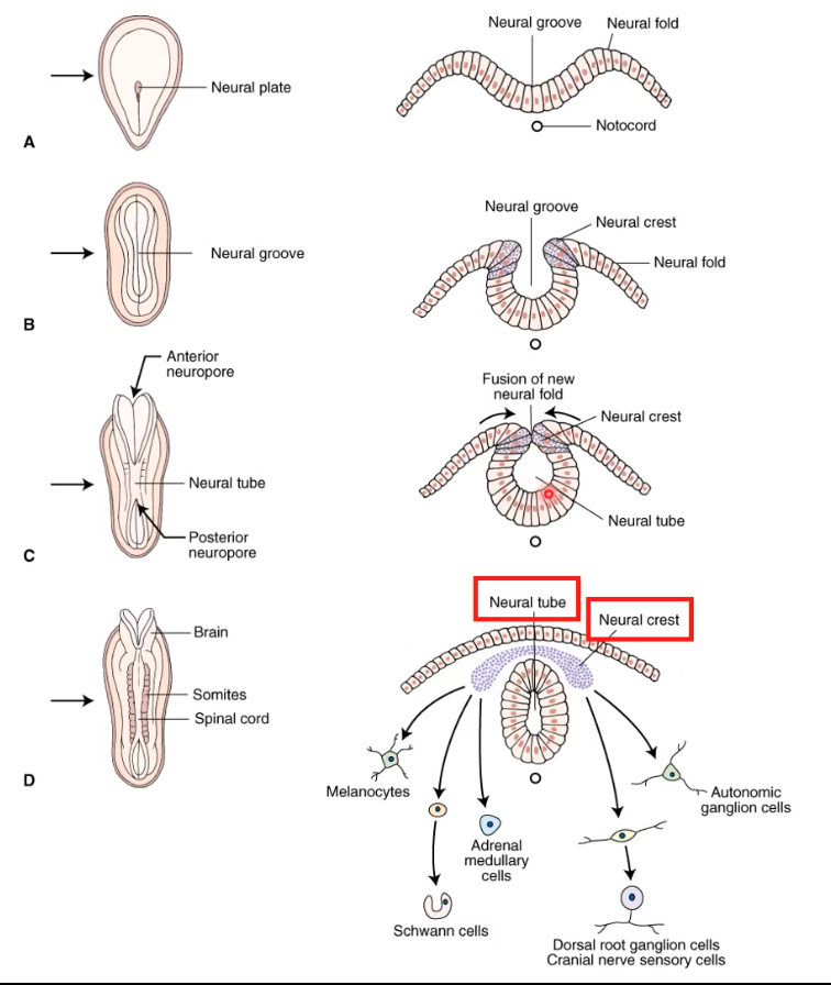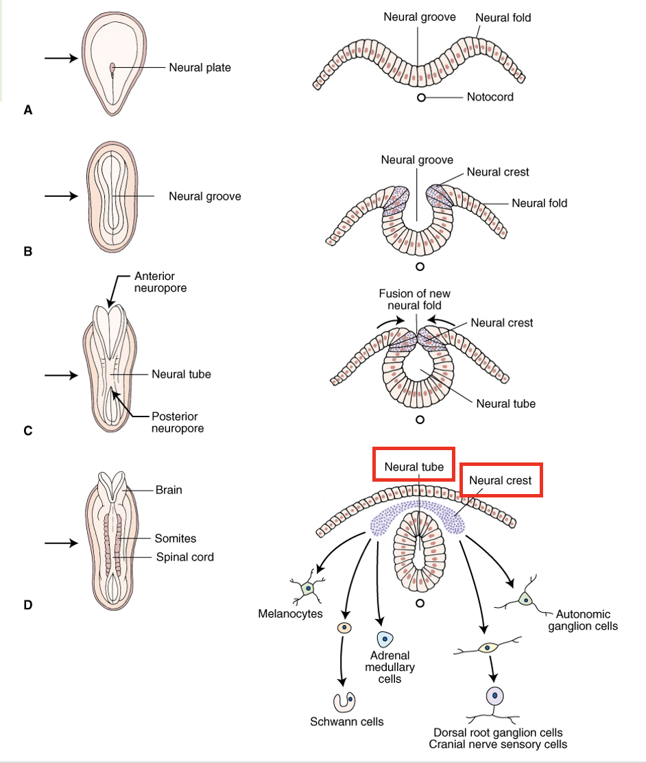5 - cells on dorsal side of neural tube differentiate into neural crests