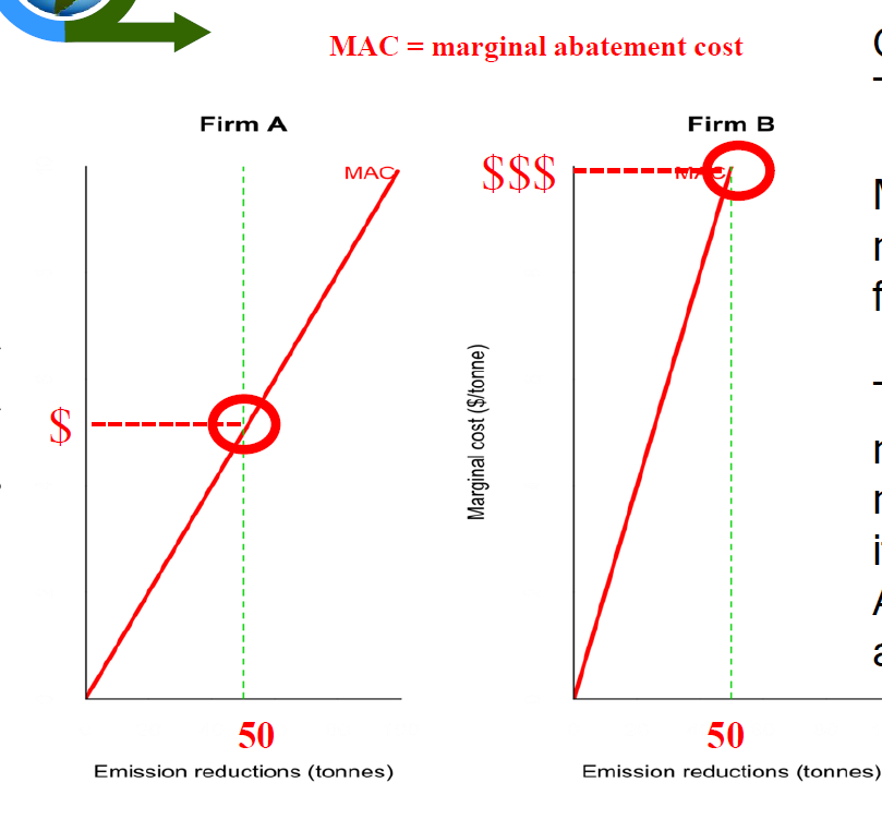 Minimize total costs of achieving an objective (GHG reduction) policy design ensures every houshold and fimr face same price for its last(marginal) unit of GHG reduced