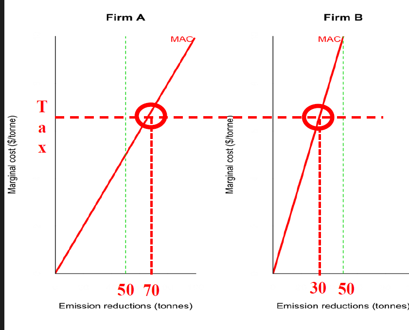Firm and tevhnologies can oay tax (or buy permits) or reduce use of technology, energy, material or output of waste and pay less tax.