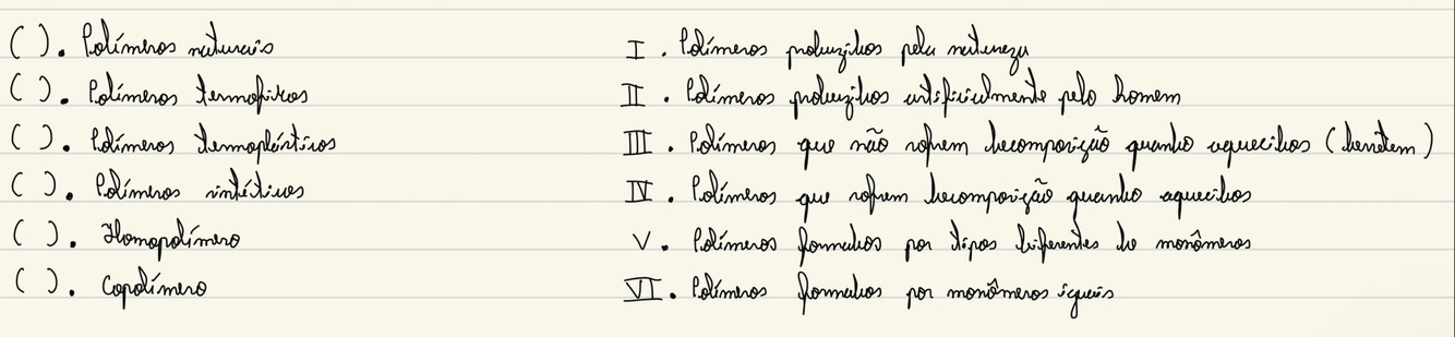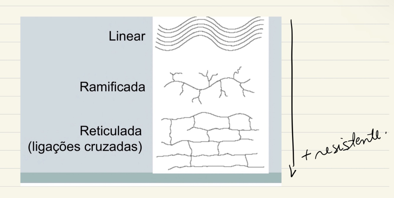 Organize, em ordem crescente, as cadeias lineares, ramificadas e reticuladas (ligações cruzadas) dos polímeros quanto a sua resistência.
