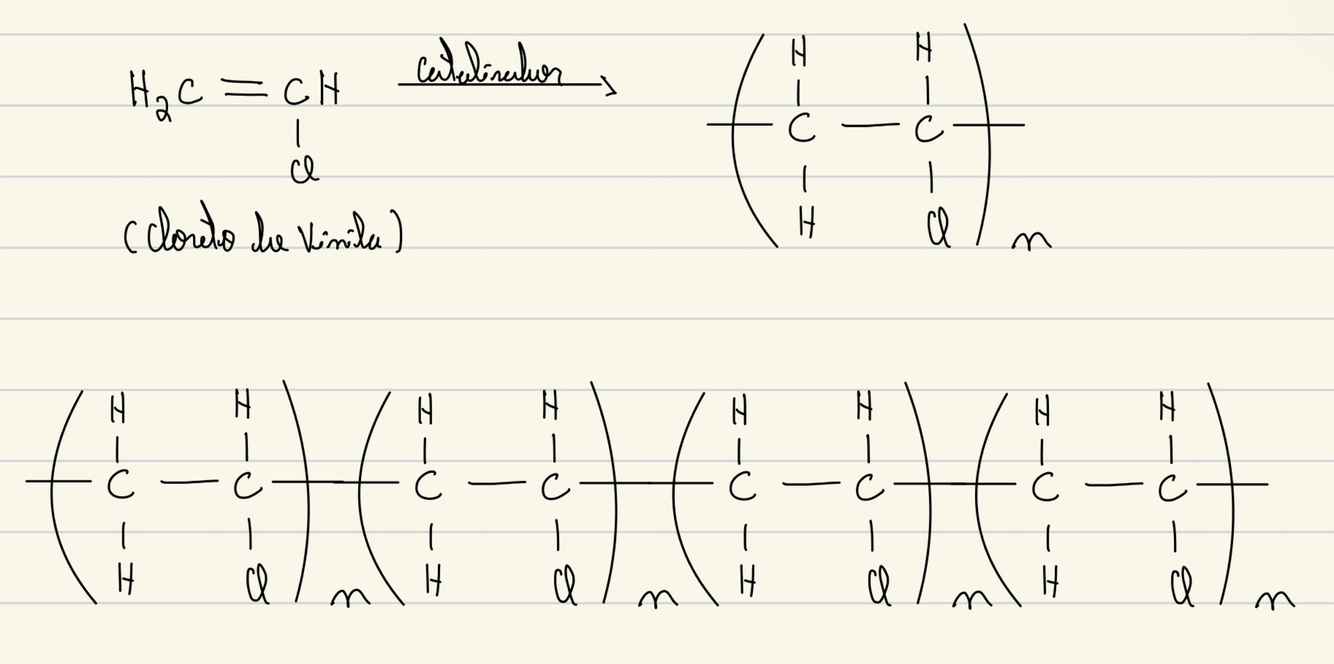 O PVC (Policloreto de vinila) é um polímero de adição formado a partir do cloreto de vinila.