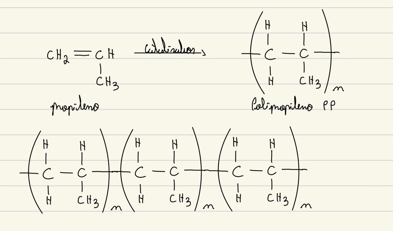 O PP (Polipropileno) é um polímero de adição formado a partir do propileno.