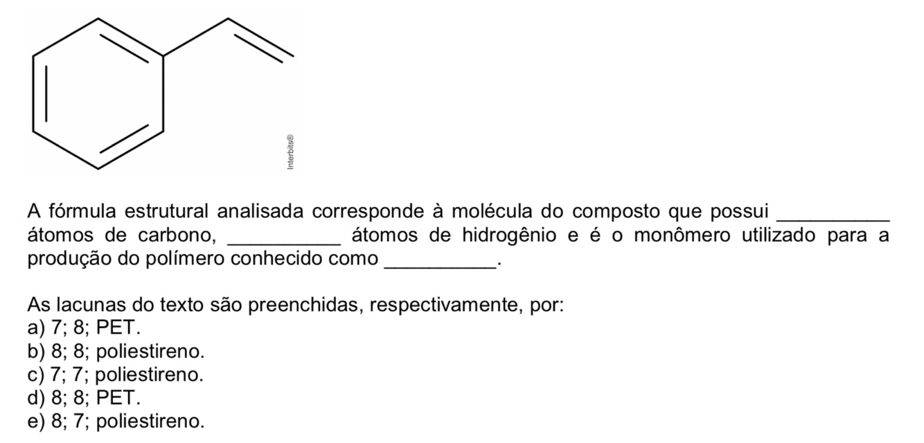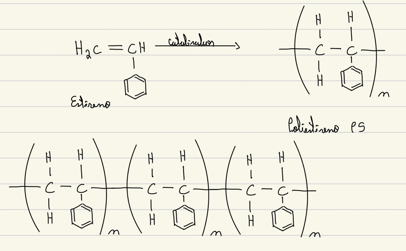 O PS (Poliestireno), conhecido popularmente como isopor, é um polímero de adição formado a partir do estireno.