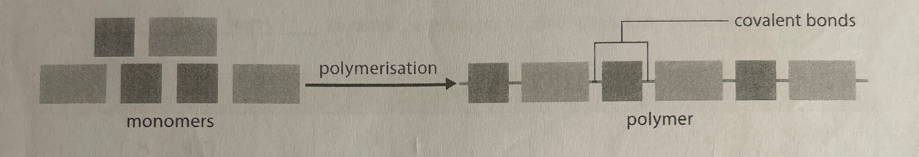 A polymer is a very large organic molecule built up from many small units called monomers joined together by covalent bonds through polymerisation