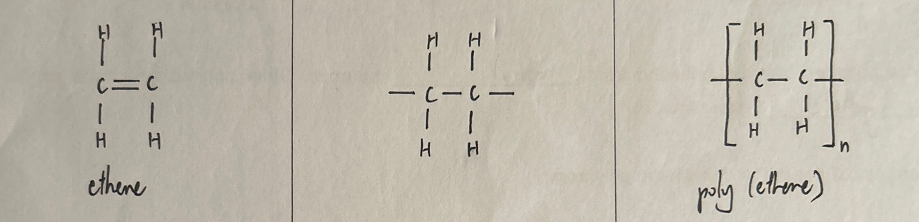 how do we form polyethylene/poly(ethene) in full structural formula