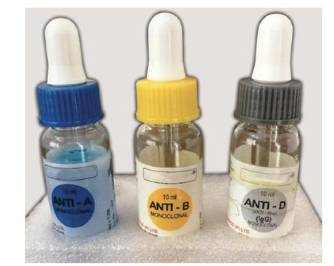 Commercially available Anti-A, anti-B, anti-D serum - blood grouping