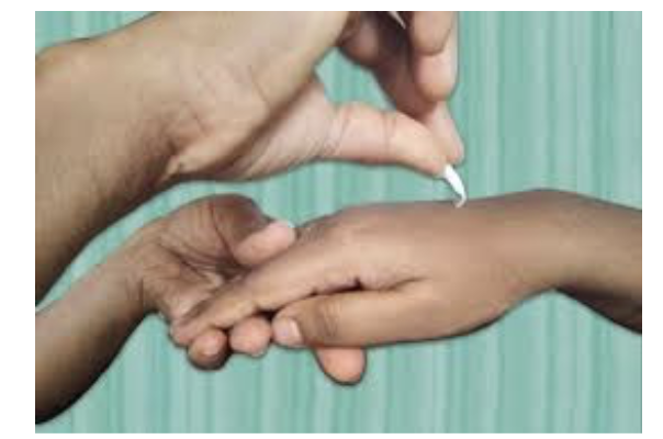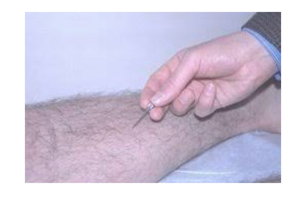 Superficial pain testing - using a paper pin