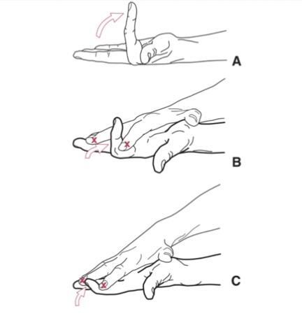 Do this for each finger, making sure the pt makes the correct “O” position with the fingers