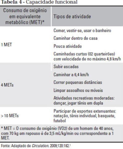 Realizar questionaria para avaliar METS (capacidade metabolica)