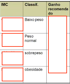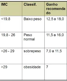 Complete com o ganho de peso esperado para gestantes em cada faixa de IMC: