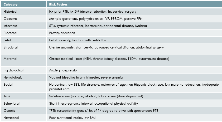Cervical trauma (previous surgery), congenital cervical abnormalities, history of shortened cervix in pregnancy)