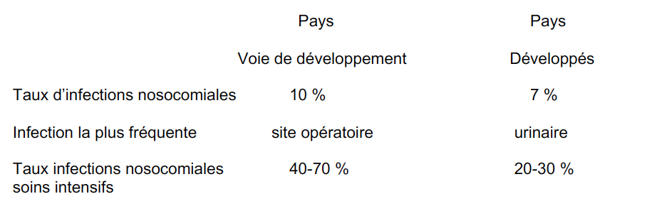 Quelle est la distinction entre les pays en voie de développement et pays développées en ce qui a trait aux infections nosocomiales?