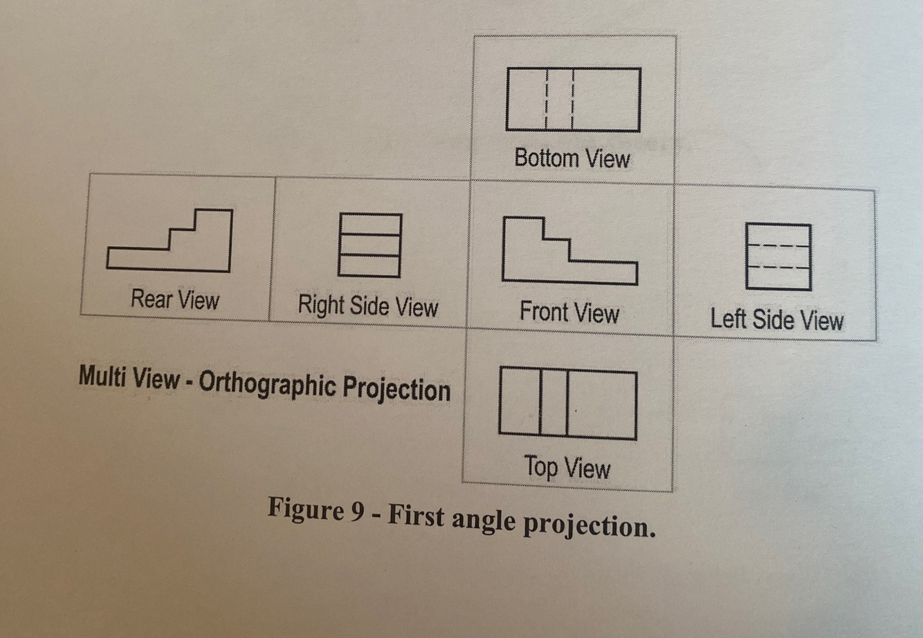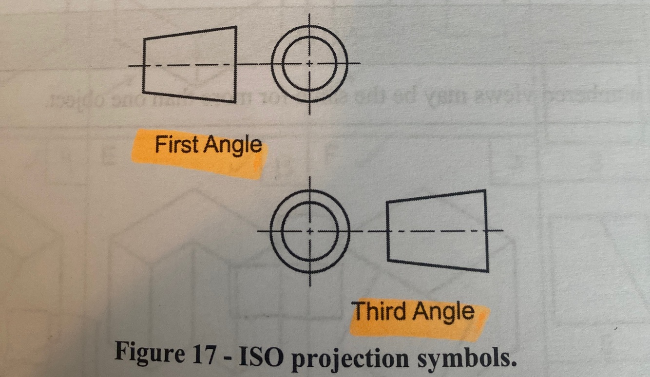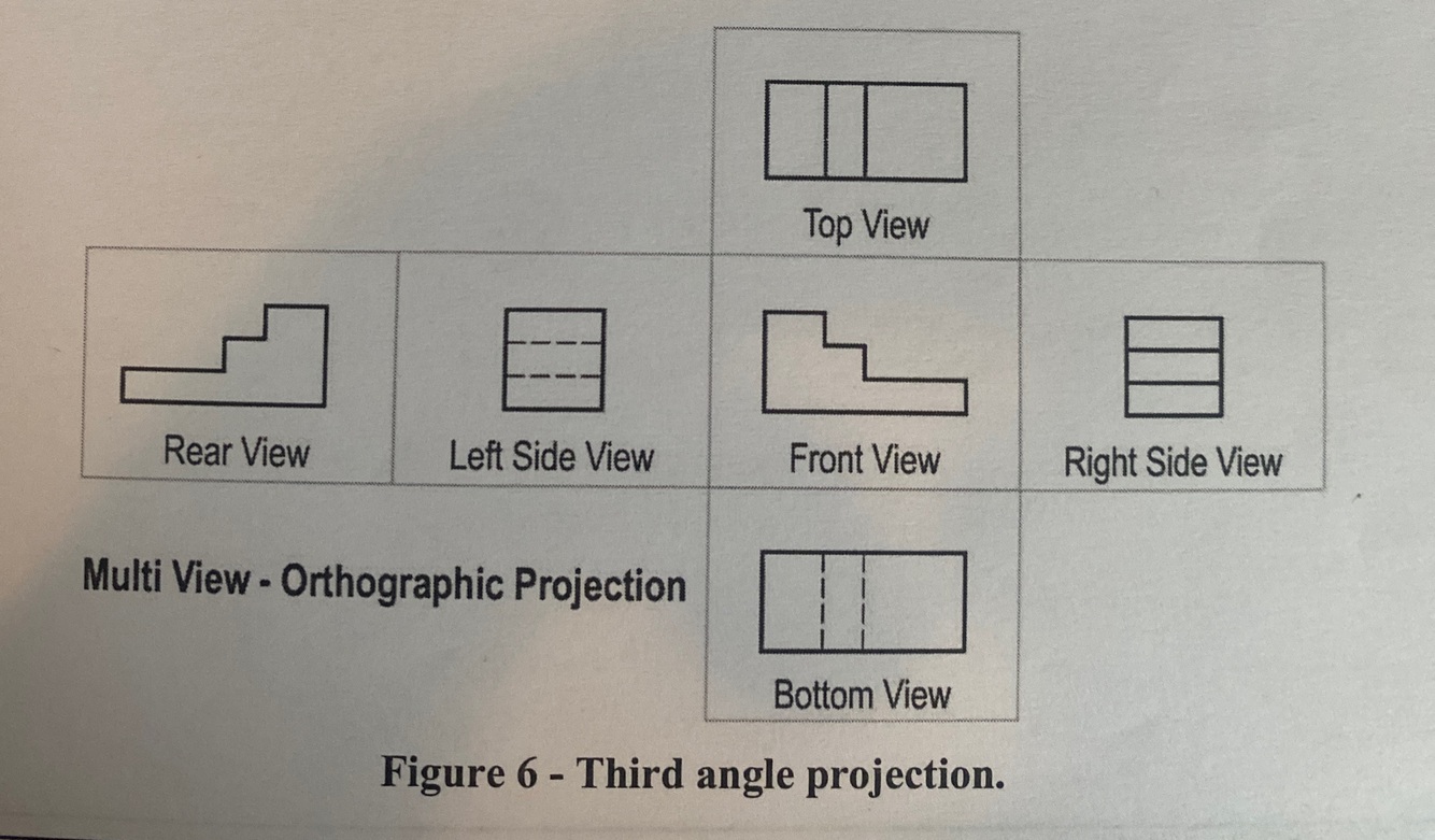 Perspective: less common in mechanical trades. Front view is undistorted and the top and right side taper into distance