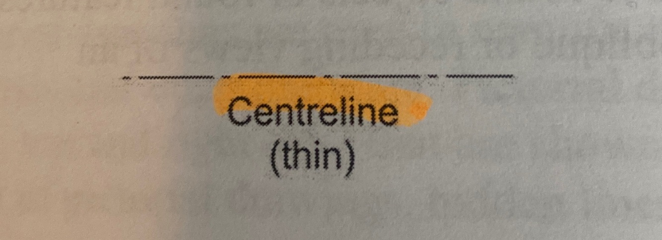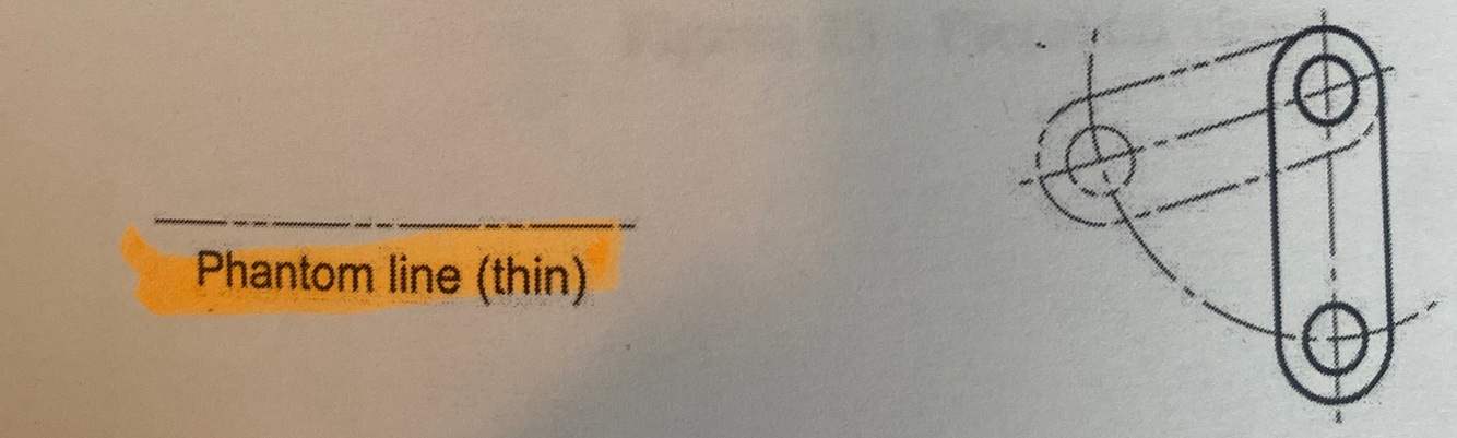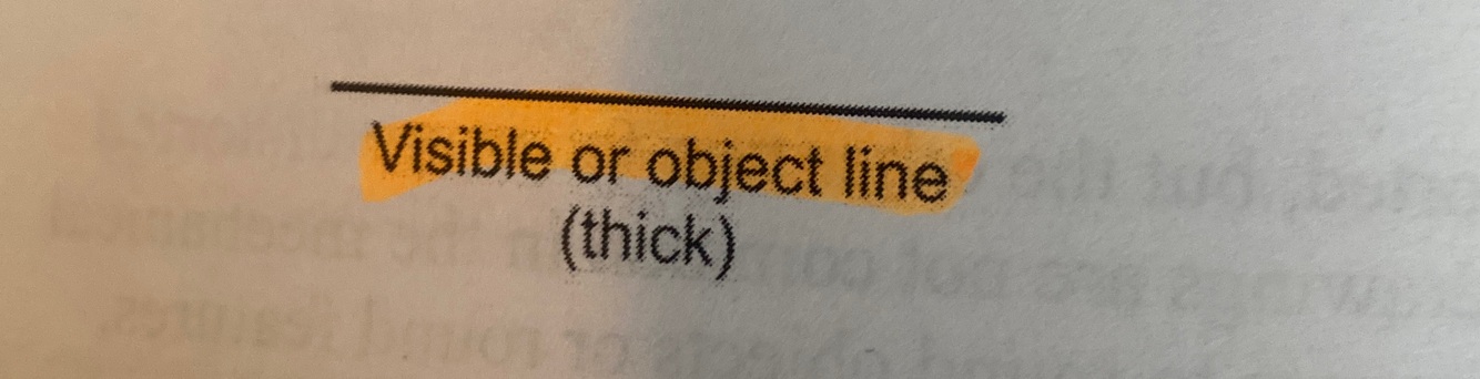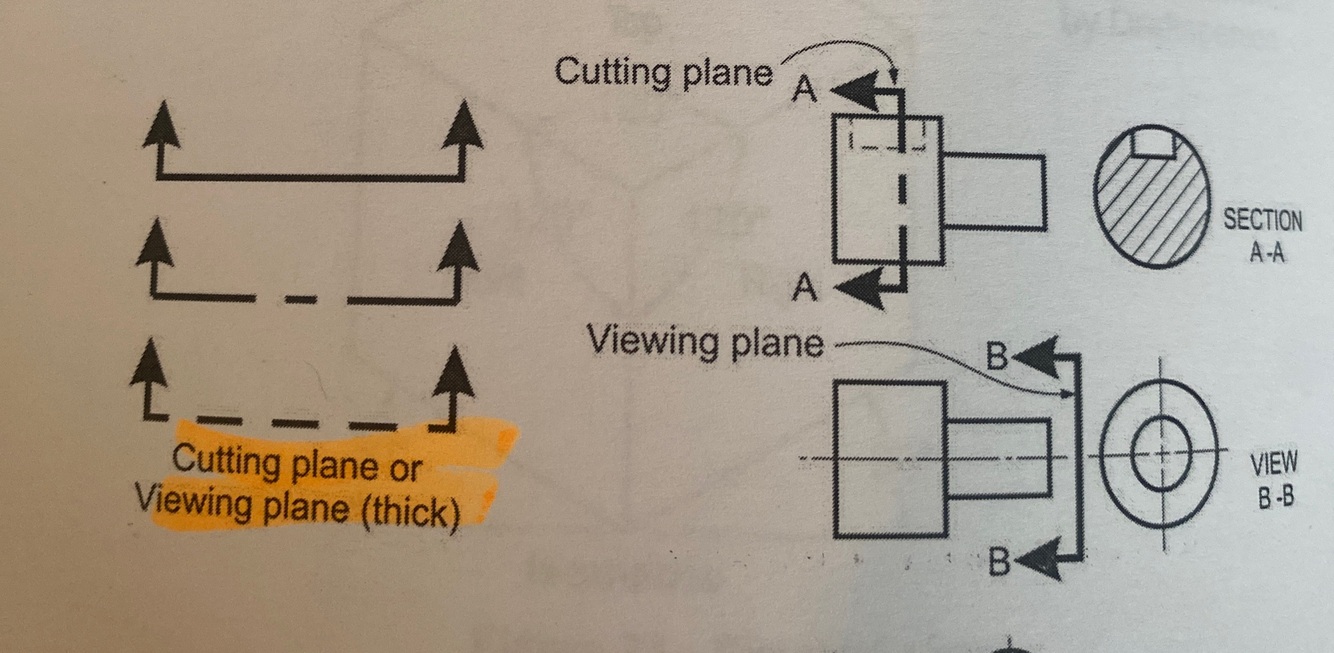 Thick, dark, broken or continuous lines with arrows at right angles on each end. Signifies where the sectional view was taken