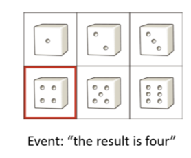 - the possible numbers rolled (1, 2, 3, 4, 5, 6)