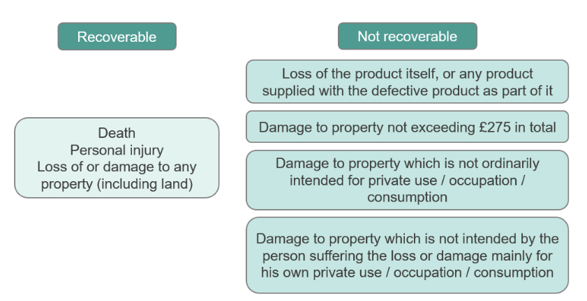 Statutory basis for claiming for damage caused by defective products