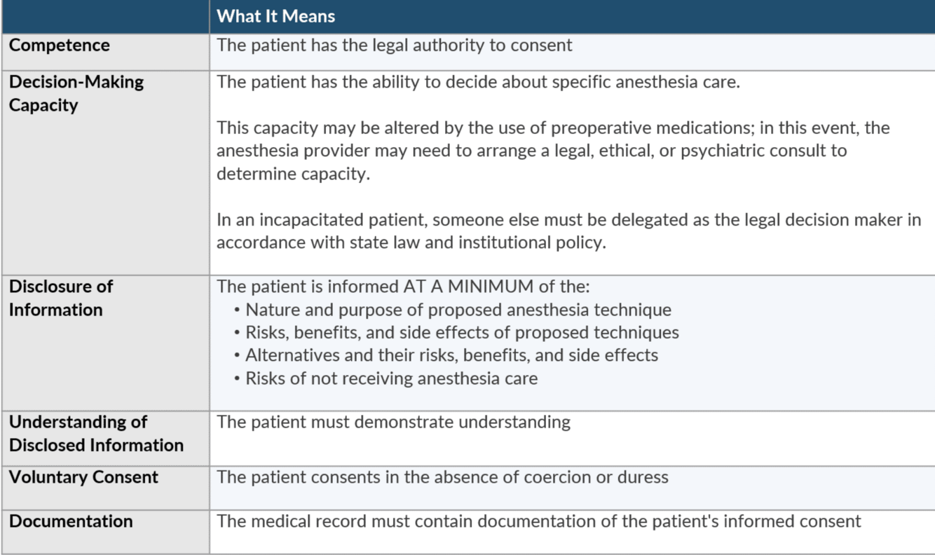 informed consent for anesthesia should include which of the following topics?