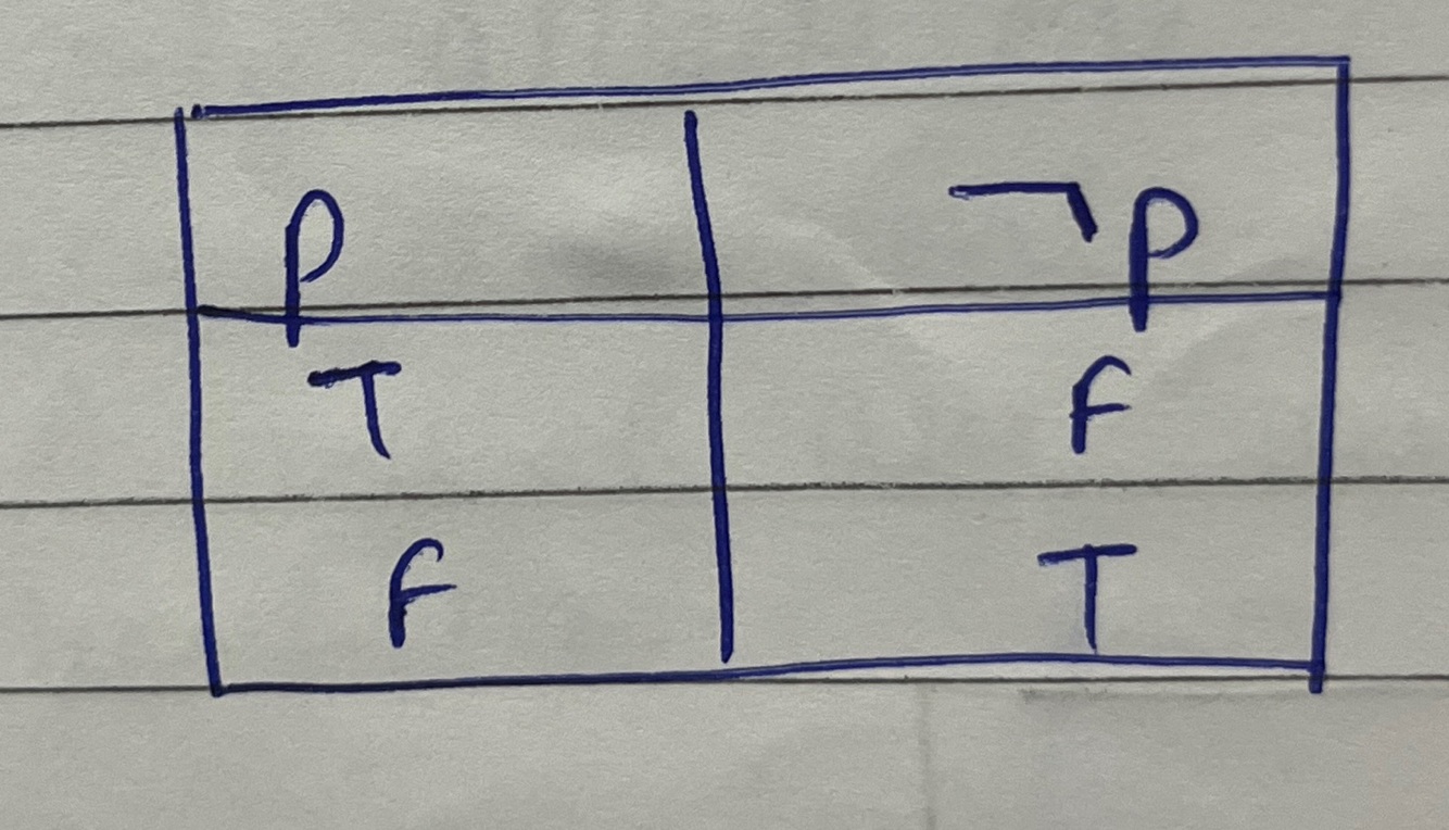The negation of p is ¬p