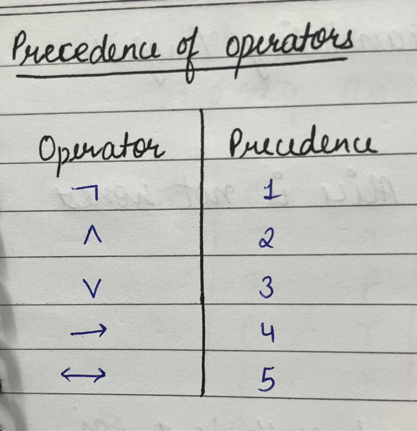 precedence of operators