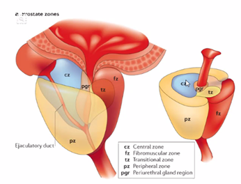 Vilka zoner i prostata är mest förknippade med prostatacancer?