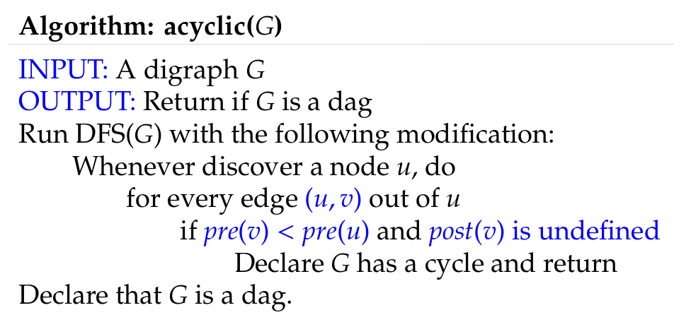 What is the pseudo code for the DFS algorithm which determines if G is a DAG (directed acyclic graph)