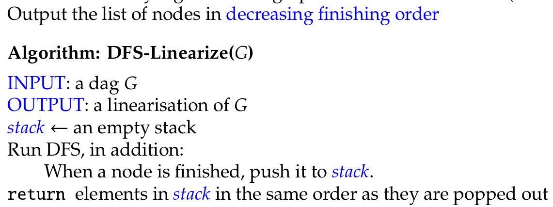 Write the pseudo code for a linearisation algorithm which runs in time O(m+n)