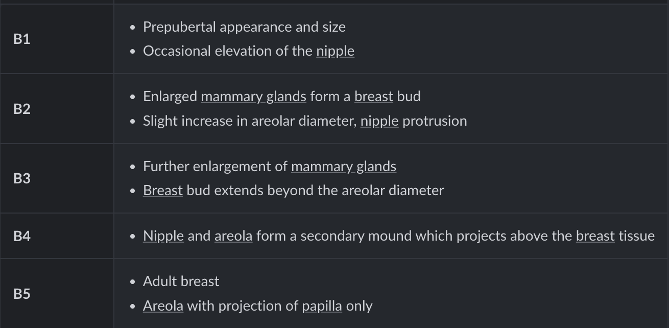 Hvilke Tanner-stadier deler man brystutviklingen inn i?