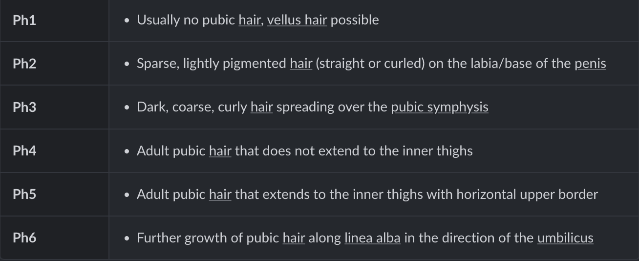Hvilke Tanner-stadier deler man kjønnshårvekst inn i?