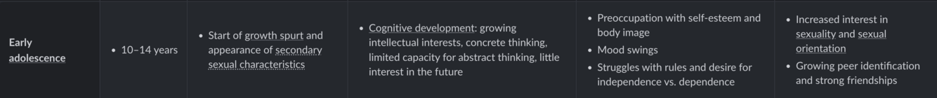 Ved 10-14 årsalder, hvilke endringer forekommer ved hhv.: