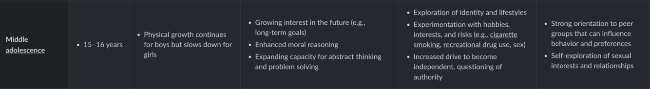 Ved 15-16 årsalder, hvilke endringer forekommer ved hhv.: