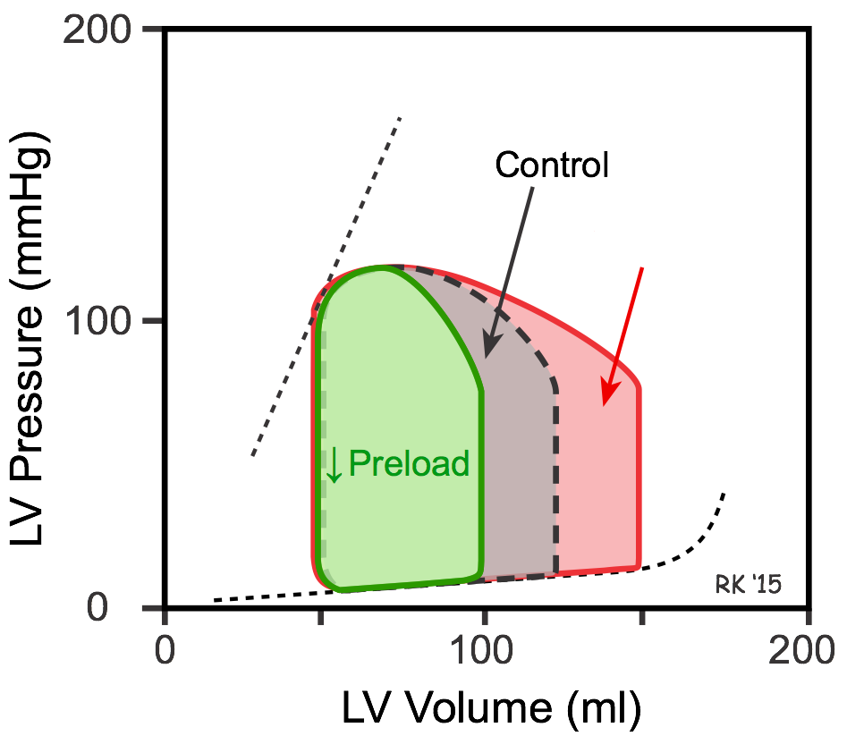 Identify Red arrow as preload, afterload or contractility (increased or decreased)