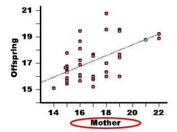 Relatedness tells you how many gene you are expected to share with someone. See how the phenotype varies with relatedness. The slope of the line is heritability.