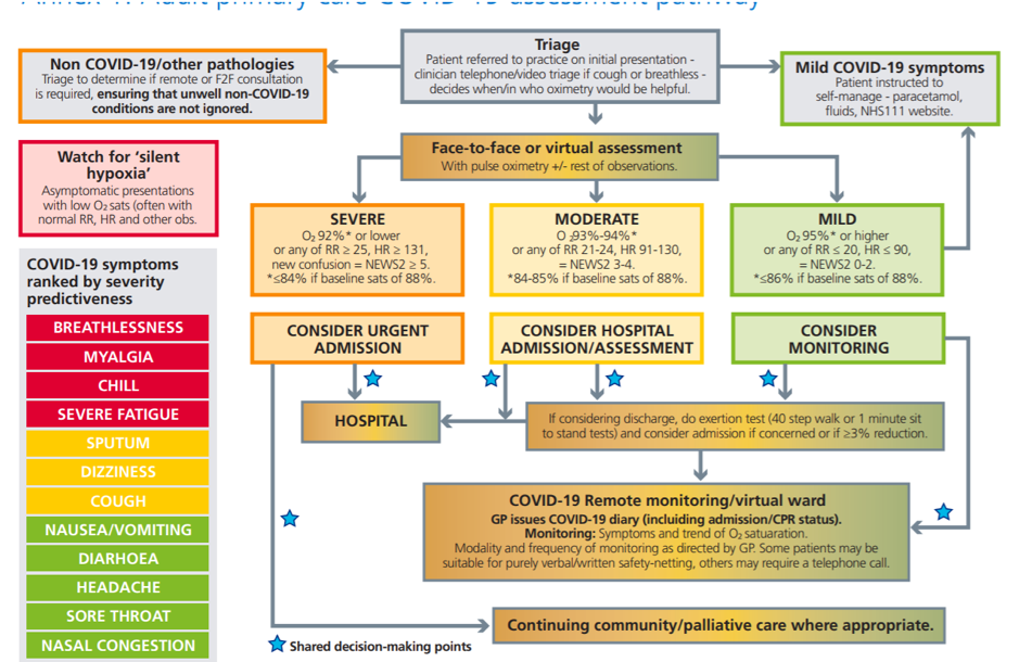 initially suspecting covid - virtual assessment ?video. if need pulse oximetry - hot clinic