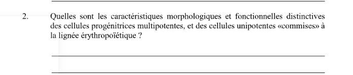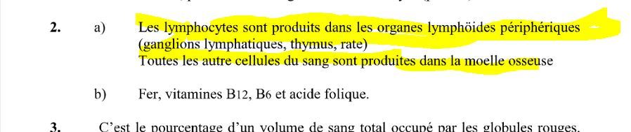 reste des cellules sanguines ( GR , plaquettes, lignée granulocytaire ) —) MOELLE OSSEUSE