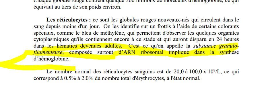 v/f les réticulocytes contiennent souvent encore un peu d’organites