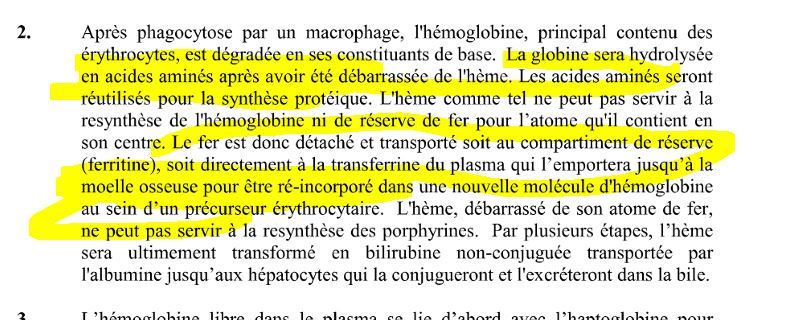 GLobine —) Décomposé en Acide aminé pour participer à la synthèse protéique