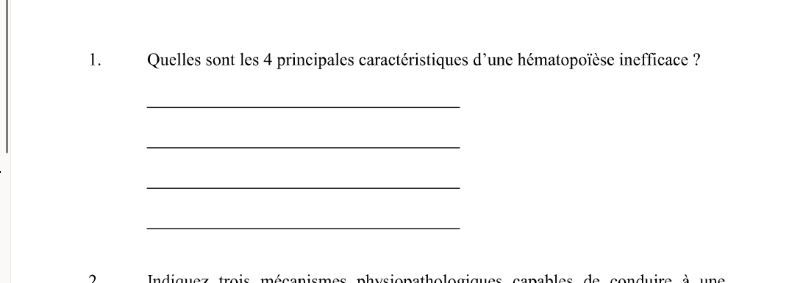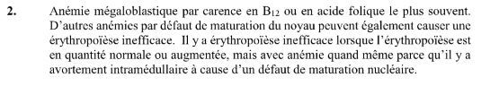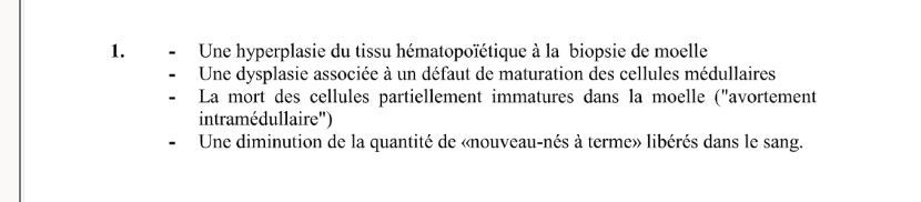 donne un exemple de patho ou dx qui implique hématopoièse inefficace