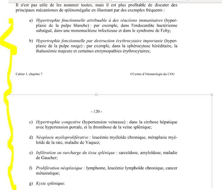 je veux 4 mécanismes physiopatho qui peuvent mener à splénomégalie