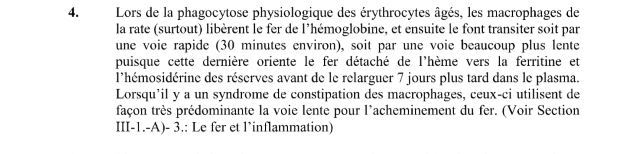 FER –) Va soit dans les reserves soit directement à la transferrine pour aller reparticiper à l’hématopoièse