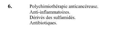 Nomme moi 4 catégories de médicaments qui peuvent causer neutropénie