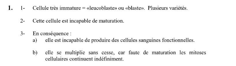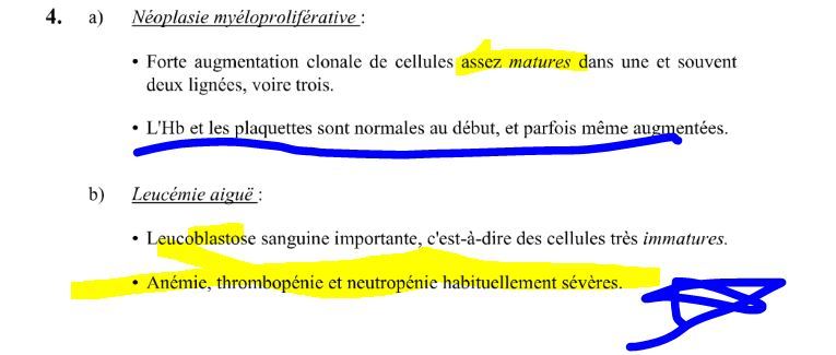 donne 2 différences à la FSC entre néoplasie myéloproliférative et leucémie aigue