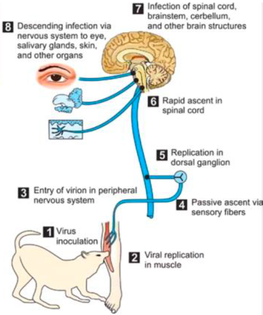 Cuestiones importantes para que el virus pase de músculo a nervio