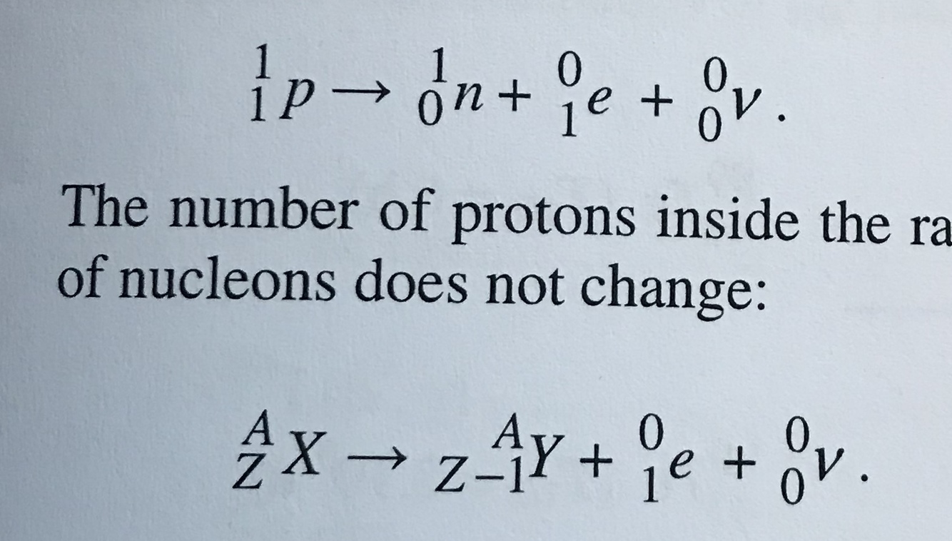 appears during the spontaneous transformation of a proton into a neutron inside the nucleus and the simultaneous emission of a particle called neutrino