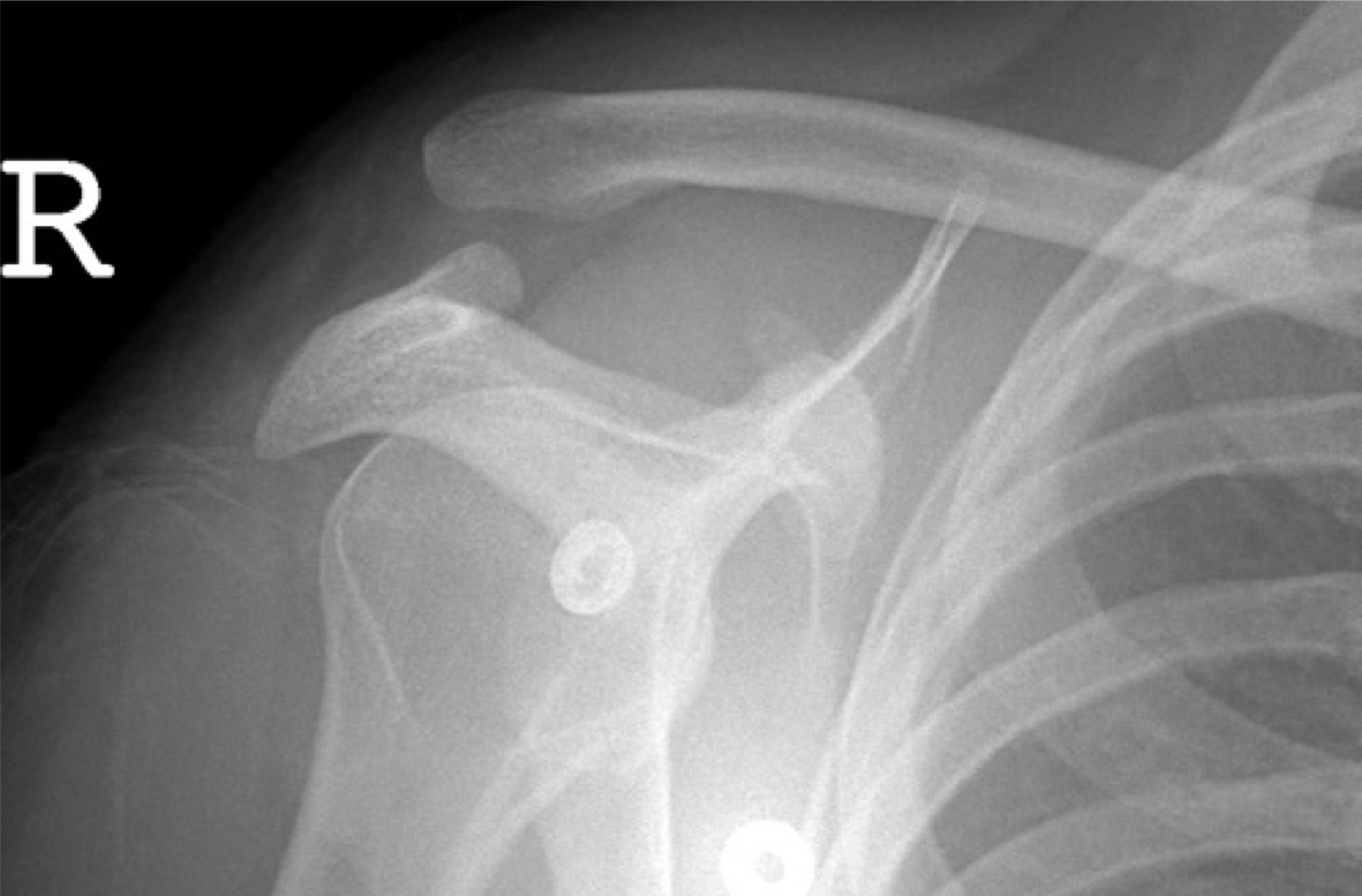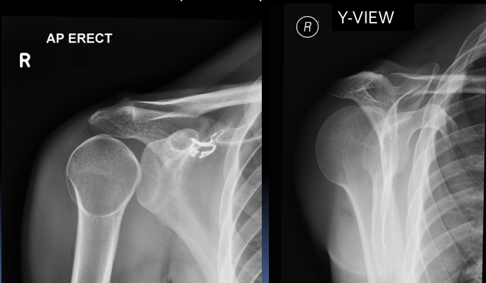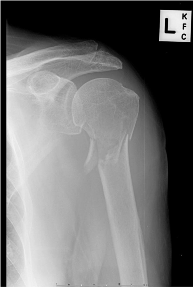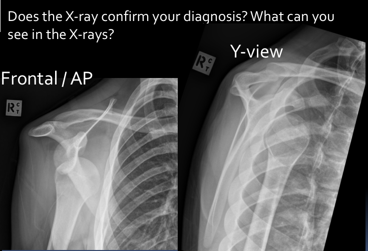 Clinical case: You are asked to review the X-rays of a 30 year old man on the Acute Medicine ward. He was admitted yesterday via A&E with generalised tonic-clonic seizure. Overnight he complained of pain in his right shoulder and the on-call doctor requested X-rays.