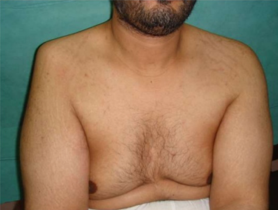 Clinical case: A 46 year old man was thrown from his bike. He had pain and deformity of his right shoulder.