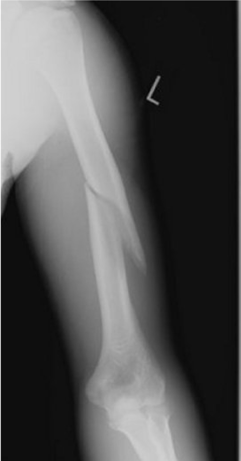 Clinical case: A 13 year old boy fell whilst playing with friends. His left arm was very painful and swollen.