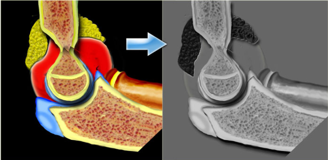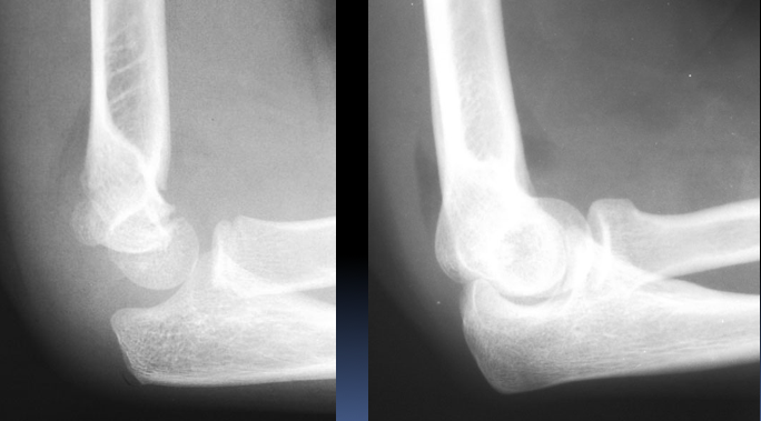 This pushes up against the fat pads and pushes them away from the humerus - become more visible on x-rays as dark grey areas anterior and posterior to the joint