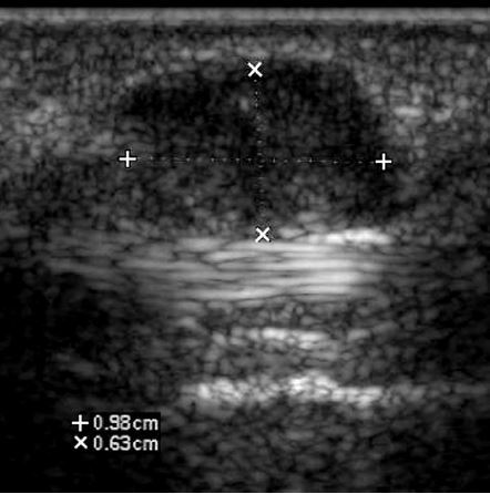 • well-marginated lesoins that are typically hypoechoic
