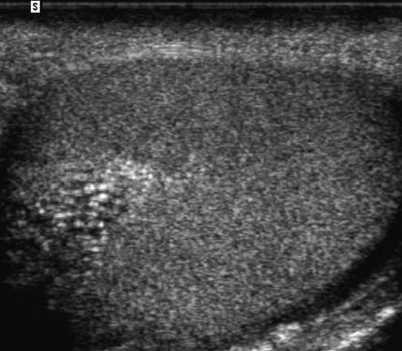 • The key to making the diagnosis and distinguishing tubular ectasia of the rete testes from cystic testicular tumors is to note the bilateral involvement when present and to recognize the elongated shape on long-axis views of the testis.