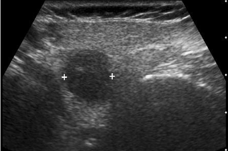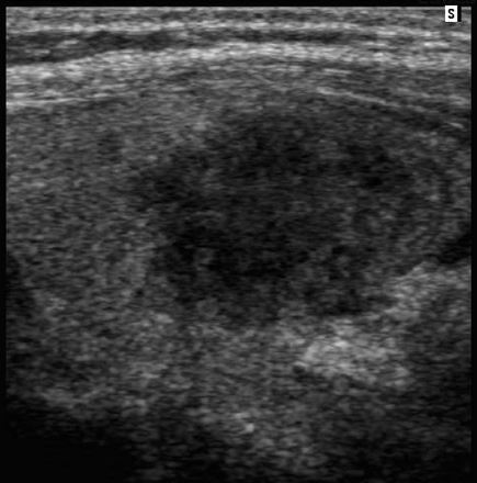 • Warthins tumor - heterogeneous hypoechoic mass with cystic components